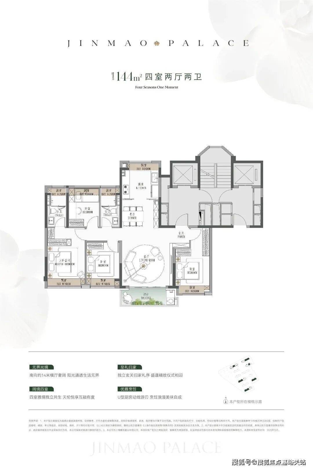 ● 建面约190㎡4房:楼王位置的顶奢大平层,同价位段在杨浦只能买到约120㎡3房!